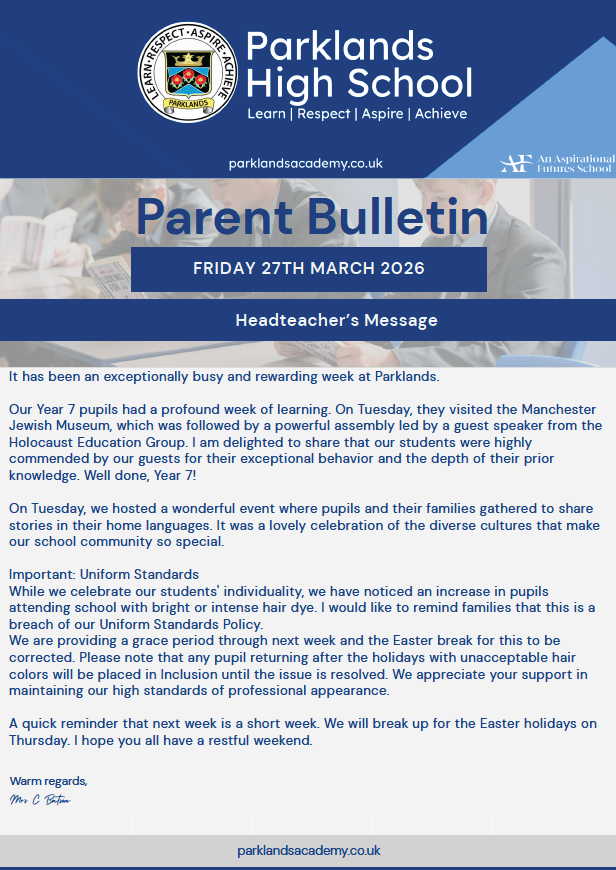 Parklands Bulletin 27 March 2026 Please follow this link for access to recent and archived parent bulletins. previous